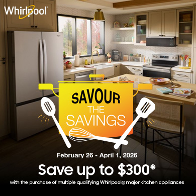 Save $300* with the purchase of 3+ qualifying Whirlpool kitchen appliances