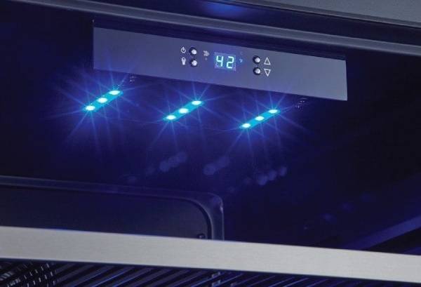 The true, blue LED track lighting that illuminates the interior of this unit exquisitely displays your beverages without any damaging heat. This feature can be turned off or off at your leisure, so your selection can be in the spotlight or more discreetly displayed.