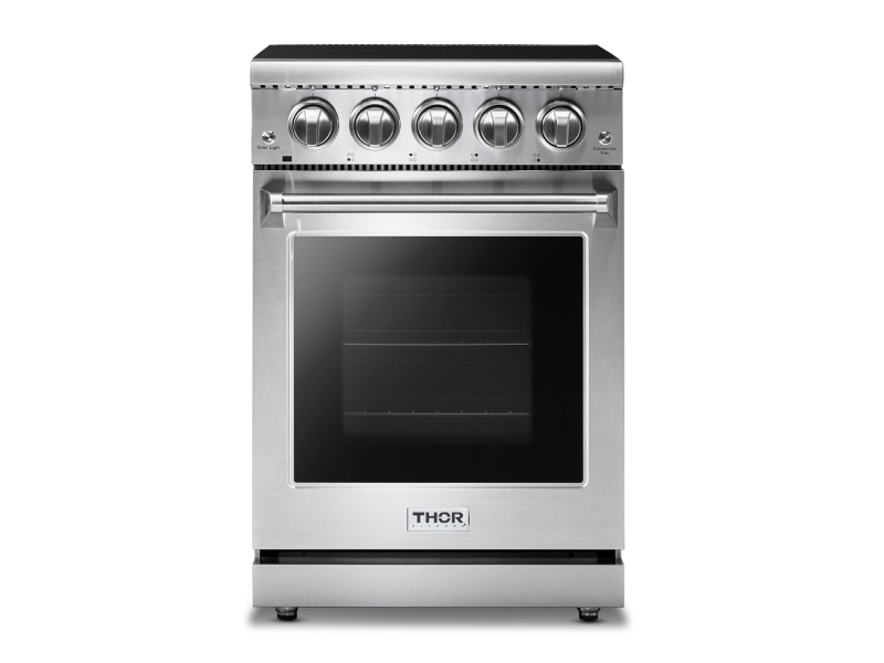 The THOR Kitchen 24 Inch Professional Electric Range is a stainless-steel machine that is designed with powerful features and functionality. This range features a smooth glass top that is easy to clean and four heating element zones that give you the ultimate cooking flexibility. From a 1200W single burners to a high-powered 2,200W dual heating element, this range gives you the power to master any meal.