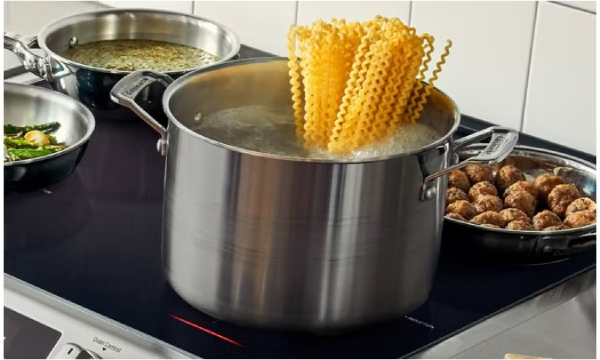 Induction elements offer speed heating, precision, and responsiveness for fast boiling. LG STUDIO s exclusive red LED Bar Design displays power level settings by each cooking element for convenient monitoring.