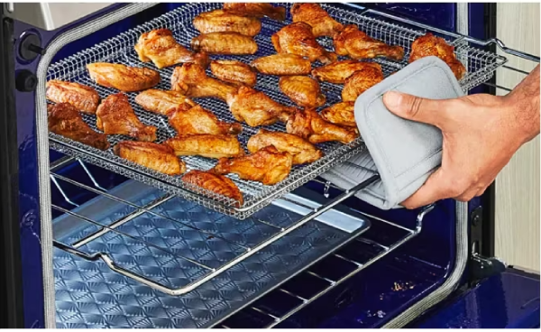 Air Fry delivers crispy flavour with no preheating and makes enough to feed a group. Just press Air Fry to prepare your favourite snacks like fries, hot wings, and more. High temperatures and the convection fan work together to deliver the flavour and crunch you crave without the oil--or the guilt.