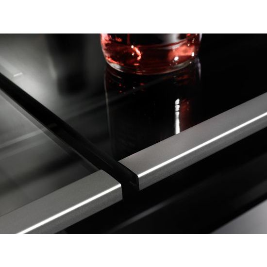 Glass shelves accented with brushed aluminum trim appear to float with an open, refined look, providing enhanced visibility while making foods and beverages easy to see and locate.