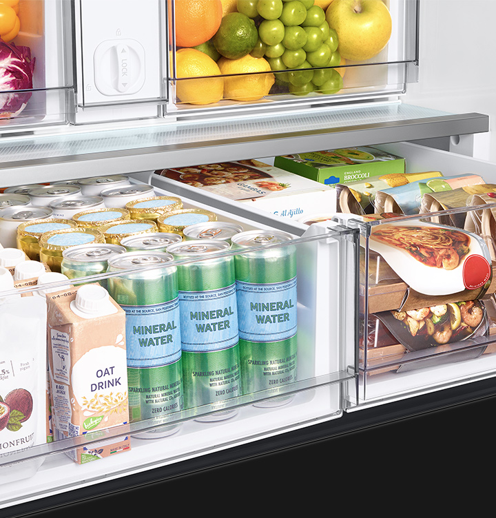 Take special care of delicate foods. The New Big Pantry is a separate drawer that lets you store much more meat, poultry and fish, including large-sized items. You can also store various types of packaged items, like pre-prepared food, MHR and meal kits. Even drinks cans can be stored upright.