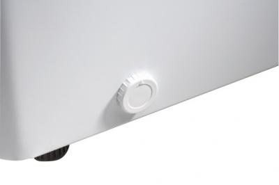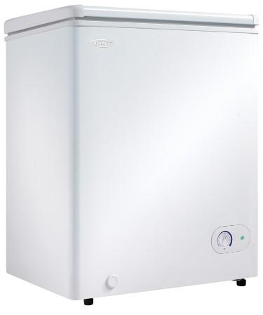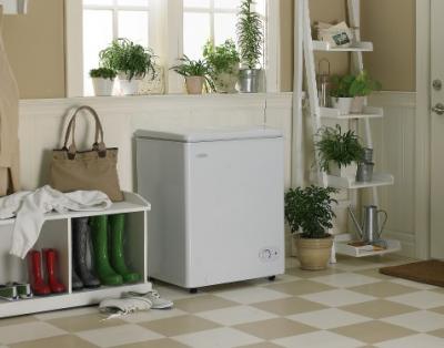 If space is tight there's no need to worry as this sophisticated compact chest freezer is just 25 inches in width by 22 inches deep. However, it still provides you with a generous 3.8 cubic feet (108 liters) of storage room and can easily be installed in any room, making it the perfect model for offices, cottages, apartments and condominiums. Operating and maintaining the unit is simplified by the manual-defrosting system, the front-mounted defrost drain, and the easy-to-clean interior liner. The energy-efficient freezer cabinet and rounded lid are both foam insulated to help keep your electricity bills as low as possible. Finding your favorite frozen food items is simplified with the strong white wire basket provided. The highly-efficient mechanical thermostat is also front mounted for ease of use and its variable temperature range lies between a cool -12°C and -24°C (10.4°F and -11.2°F). This popular freezer also comes with a worry-free 5-year warranty on parts and labor and features convenient in-home service.