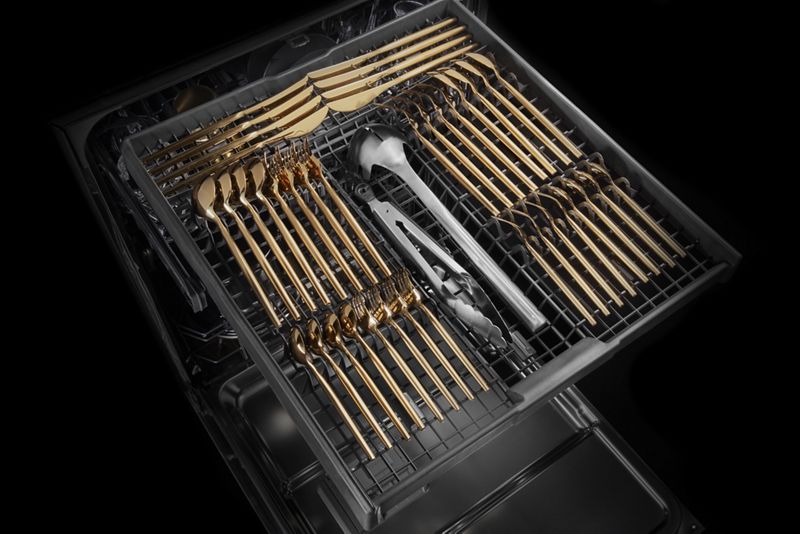 A JennAir signature, these dramatic black racks are inspired by the beauty of volcanic glass†showcasing clean dishes in striking contrast.