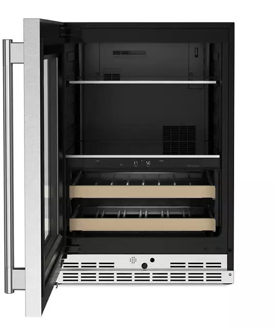 24" KitchenAid Beverage Center with Glass Door and Wood-Front Racks - KUBL524SPS