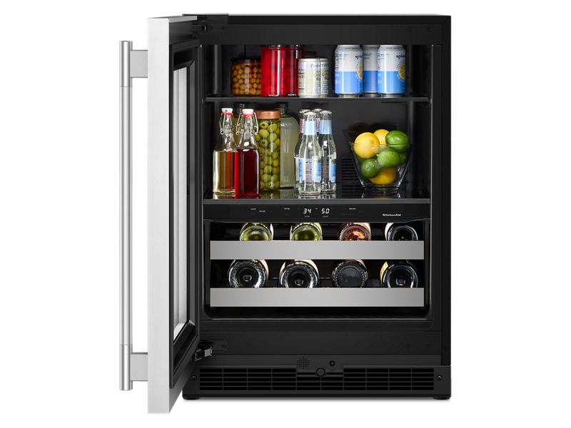 24" KitchenAid Beverage Center with Glass Door and Metal-Front Racks - KUBL524SSB