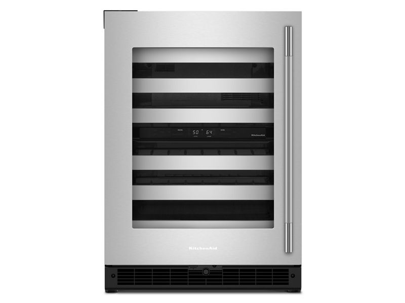 24" KitchenAid Undercounter Wine Cellar with Full-Extension Metal-Front Racks - KUWL324SSB