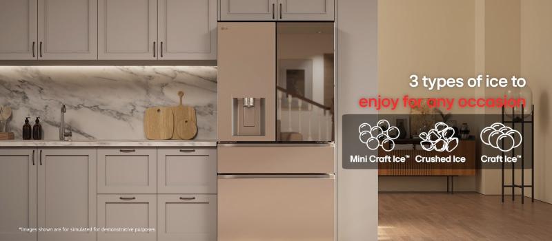 LG's Exclusive Craft Ice® maker produces slow melting round craft ice for better taste. Give your beverages the perfect ice for next level entertaining, from craft cocktails & whiskey to soft drinks, lemonade, even iced coffee. To get even more Craft Ice®, activate Craft Ice+ in the ThinQ® App to make slow-melting ice twice as fast