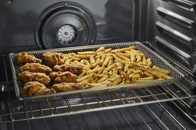 Maytag® ranges make it easy to fry up your favourites with the included stainless steel Air Fry basket. Built to fit on a standard 13" x 18" baking sheet, this Air Fry basket is dishwasher-safe for easy cleanup.