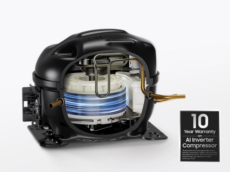 The AI Inverter Compressor learns your usage patterns to adjust speed and use less energy.* Plus, it's backed by a 10 year warranty.**