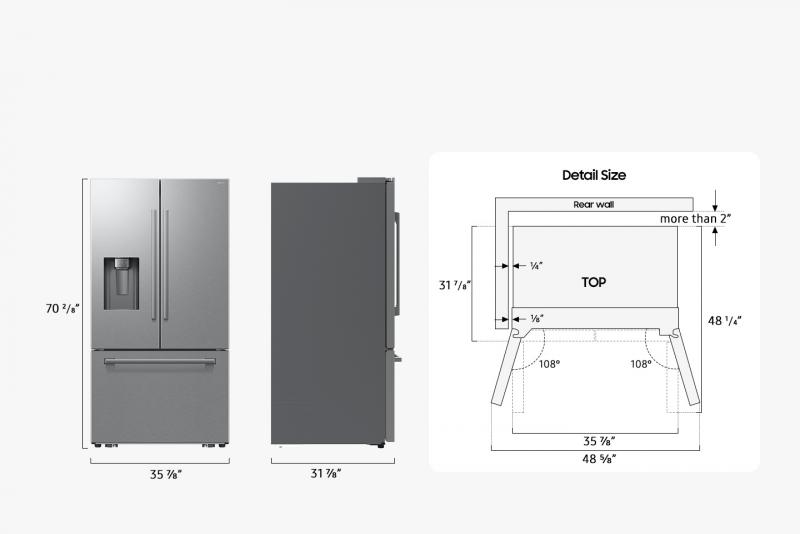 ¹Up to 0.16"" (4mm) clearance required between both sides of the refrigerator and the walls for the doors to open 108°.