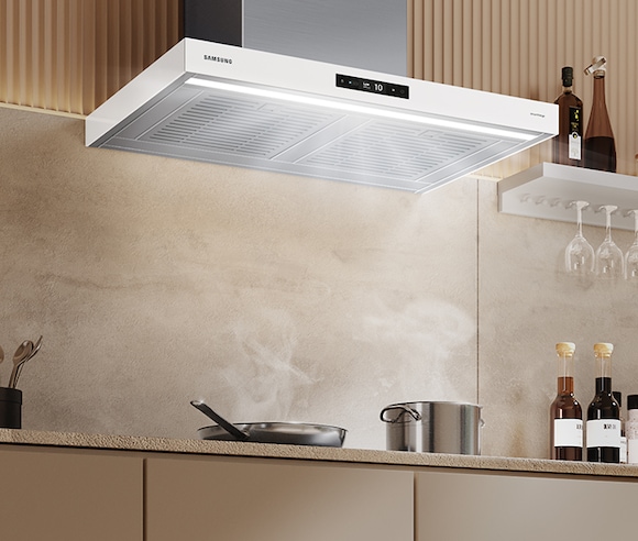 Ensure a more comfortable cooking environment. The powerful ventilation system gets rid of heat, steam, fumes and odors. You can adjust the power across 4 settings, up to an amazing 630 CFM suction capacity*. If the air quality is poor, its Smart Mode will also automatically adjust the power.