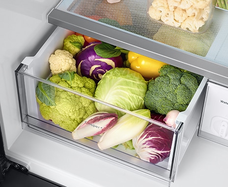 Keep different foods fresh and tasty in the optimal conditions. FlexZone™ is an independently controlled compartment with five pre-set modes: Soft Freeze, Meat/Fish, Beverage, Deli, Wine*. There’s also a Crisper+ with an airtight seal, so fruit and vegetables retain more moisture.