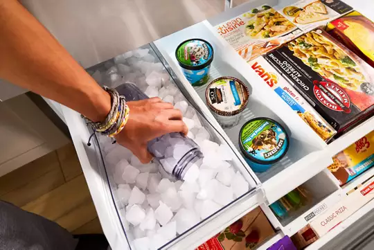 Make over 3 lbs of ice and store over 7 lbs of ice with Freezer Ice Maker. Or, turn off the ice maker and use the space for extra freezer storage.
