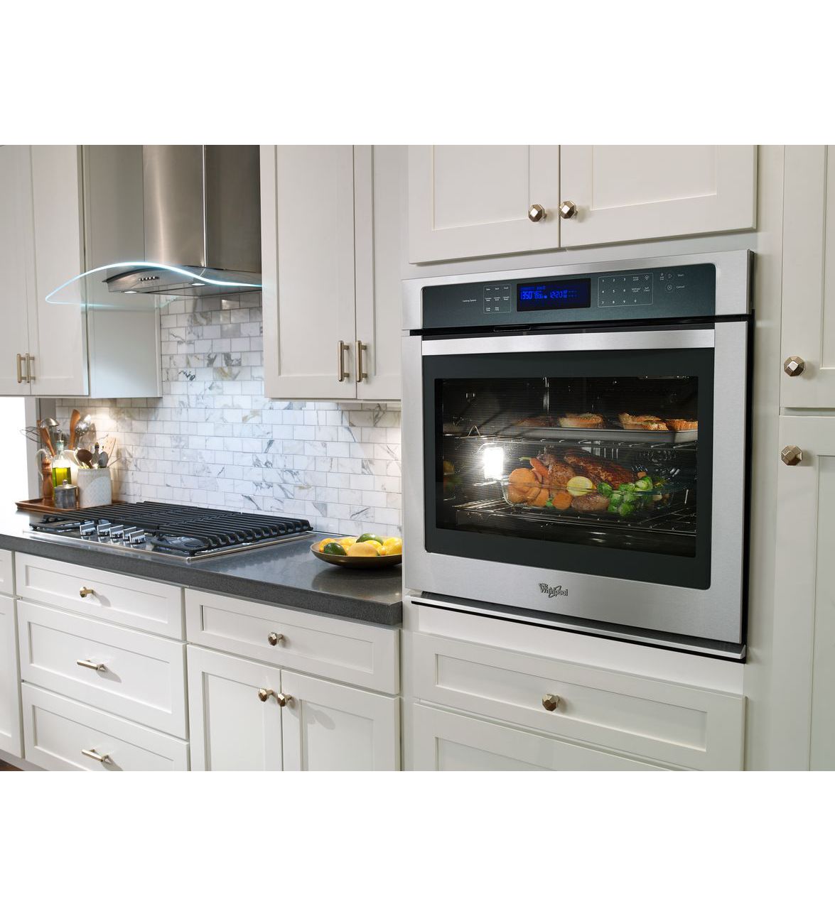 Keep home cooking part of your routine with the 5.0 cu. ft. single wall oven with true convection. It's guaranteed to fit into your existing wall oven cutout right out of the box with the FIT system. Cook dinner faster when you use true convection with Convection Conversion, and know–and see–when each dish is done without opening the oven door thanks to the digital meat thermometer and panoramic halogen lighting. Plus, digital glass controls make using the oven and cleanup simple.