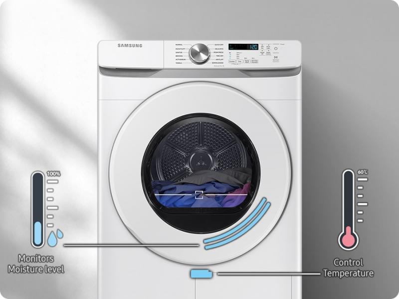 Make sure your clothes are properly dried without having to constantly check them. The Sensor Dry* function automatically adjusts the drying cycle time and temperature. It ensures that your clothes are dried evenly.