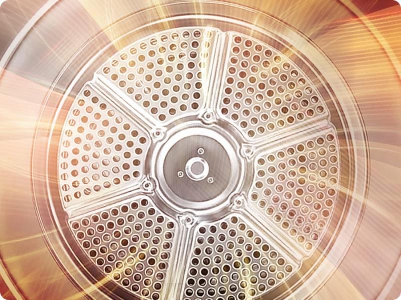 Make sure that items are dried thoroughly, wherever it is in the drum. The ventilation system features 360 holes that help improve the air circulation and evenly distribute a large volume of air in every direction.