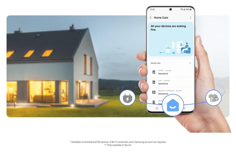 Take care of your washer or dryer easily. SmartThings Home Care* notifies you when parts need replacing and helps troubleshoot problems. It also shows you how to update software**. It provides useful tips on using your appliance and access to the user manual.