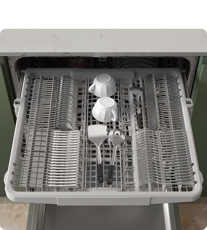 Wash cutlery and large utensils more easily with a convenient 3rd Rack* at the top. It provides a dedicated area to place cutlery and cooking utensils. Items can be loaded and unloaded quickly and efficiently. It also frees up to 30% more space in the rest of the dishwasher** for other items.6