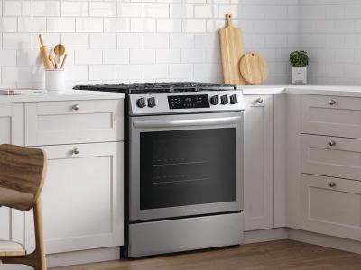 30" Frigidaire Front Control Freestanding Gas Range in Stainless Steel - FCFG3083AS