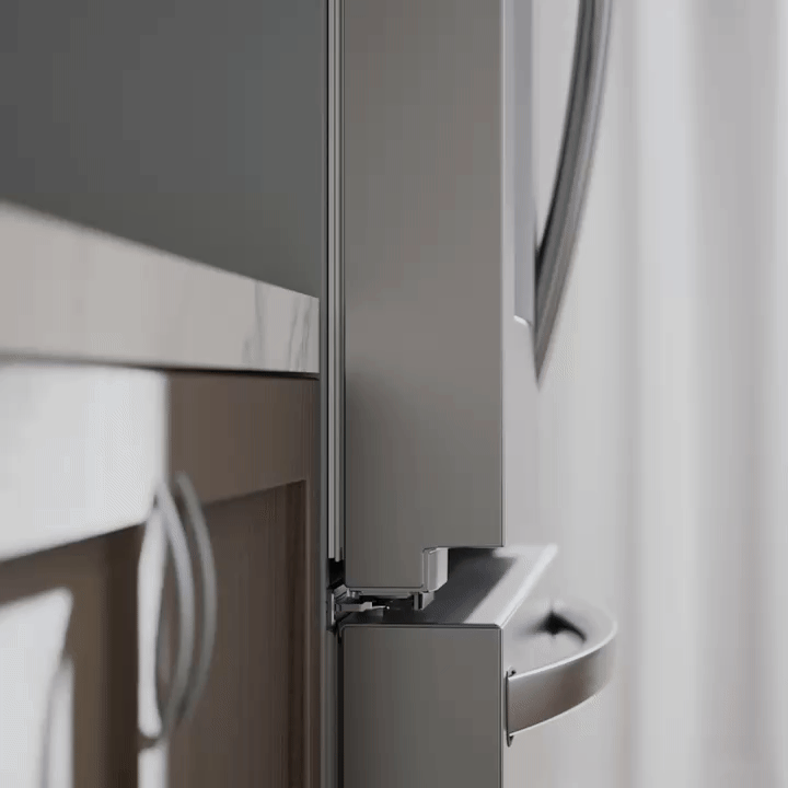 Our state-of-the-art Zero Clearance™ hinges allow you to install your fridge to be nearly flush with your kitchen cabinetry while still being able to fully open both doors—no extra clearance required*