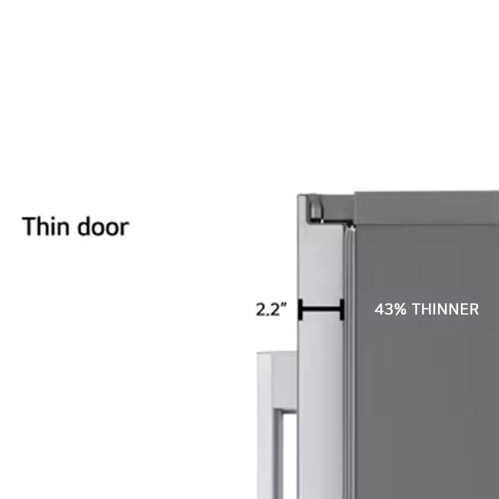 Enjoy a more compact profile while retaining the same convenient ice and water access and energy efficiency you expect. Our doors come 43% thinner* than our previous models and flawlessly combine with our Zero Clearance™ hinge system for a nearly seamless look that makes it unique among LG’s freestanding fridges.