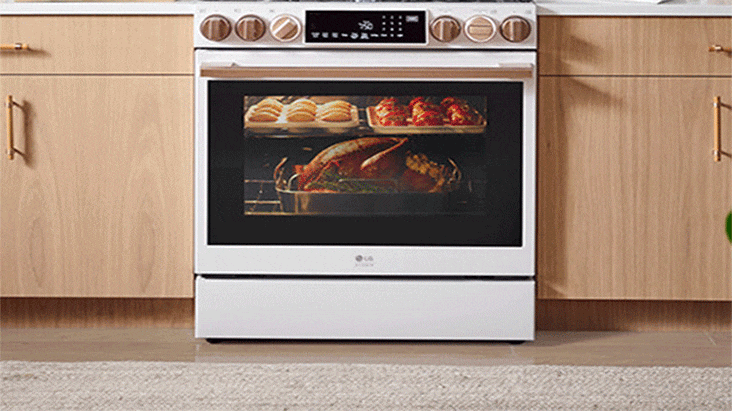 LG ProBake Convection® delivers even, precise heat on every rack, every time. Inspired by pro ranges, it’s the first freestanding range with the heating element moved from the bottom of the oven to the back, so your cookies, cakes, roasts and more are perfectly browned every time.