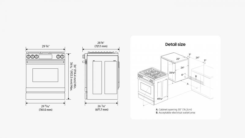 | Net Size (W x H x D) (inches) | (29.94 x 36-36.75 x 28.38 inches) |