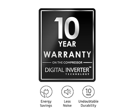Enjoy great energy efficiency, little noise and a long-lasting performance. The Digital Inverter Compressor automatically adjusts its speed in response to cooling demand. So it is quiet, uses power efficiently and is certified to work for 21 years*, with a 10 year warranty** on the compressor.