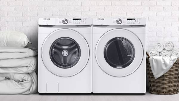 27" Samsung 5.2 Cu. Ft. Front Load Washer 7.5 Cu. Ft. Electric Dryer and Stacking Kit - SKK-8K-WF45T6000AV-DVE45T6005V