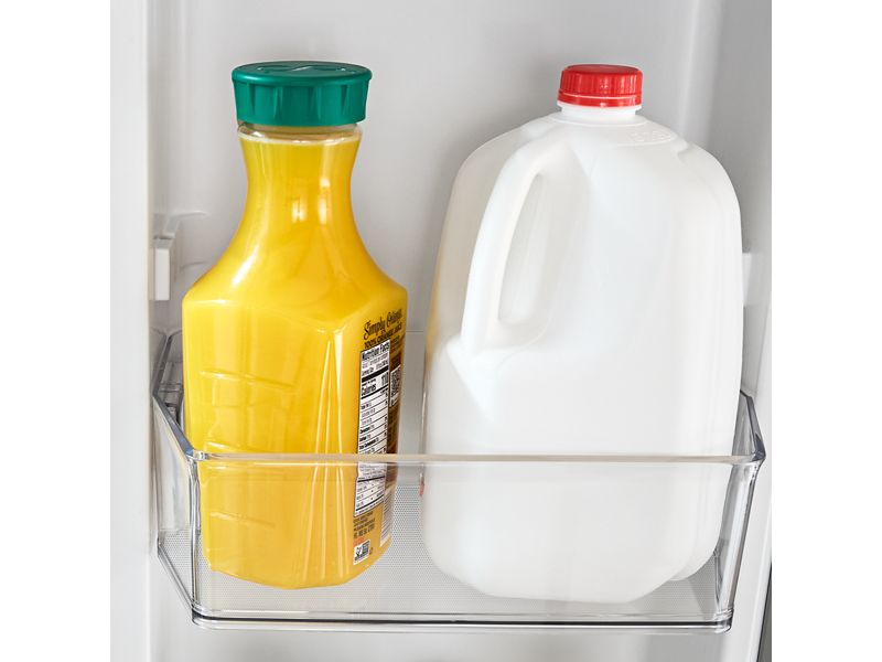 Shift the Adjustable Door Bins up or down to fit tall bottles or snack packs where your family can easily reach them. The see-through bins let everyone spot what they need in a glance and you can move them again whenever routines change to keep the door organized.