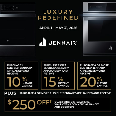 Purchase 4 Or More Eligible Jennair® Appliances And Receive $250 off on Qualifying Dishwashers, Wall Ovens Commercial Ranges And Cooktops